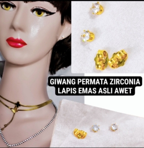 GIWANG PERMATA ZIRCONIA 4mm LAPISAN EMAS PREMIUM GOLD ANAM4mm