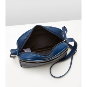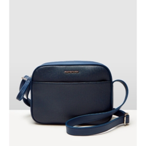 Tas selempang wanita berbahan dasar kulit sintetis yang berwarna navy, terdiri dari 1 kantong resleting utama, 1 kantong resleting di dalam dan 1 kantong serbaguna di depan. UK 20 x 6 x 15,5 cm.