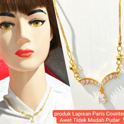 KALUNG KOYE FUJI VIRAL CANTIK V PERMATA ZIRCONIA BERKILAU LAPIS EMAS AWET