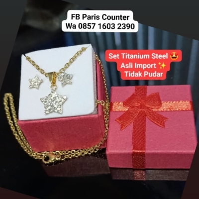 KALUNG SET BINTANG PERMATA TITANIUM STEEL ASLI IMPORT TIDAK PUDAR GOLD STBTT