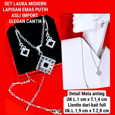 SET SILVER LAURA PERMATA ZIRCONIA FULL LAPISAN EMAS PUTIH ASLI IMPORT SSLPZ